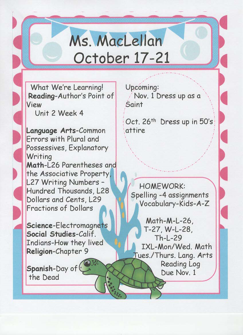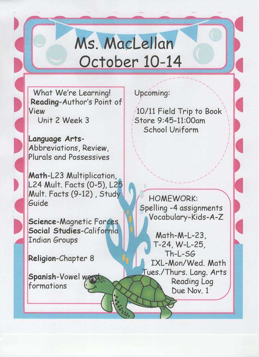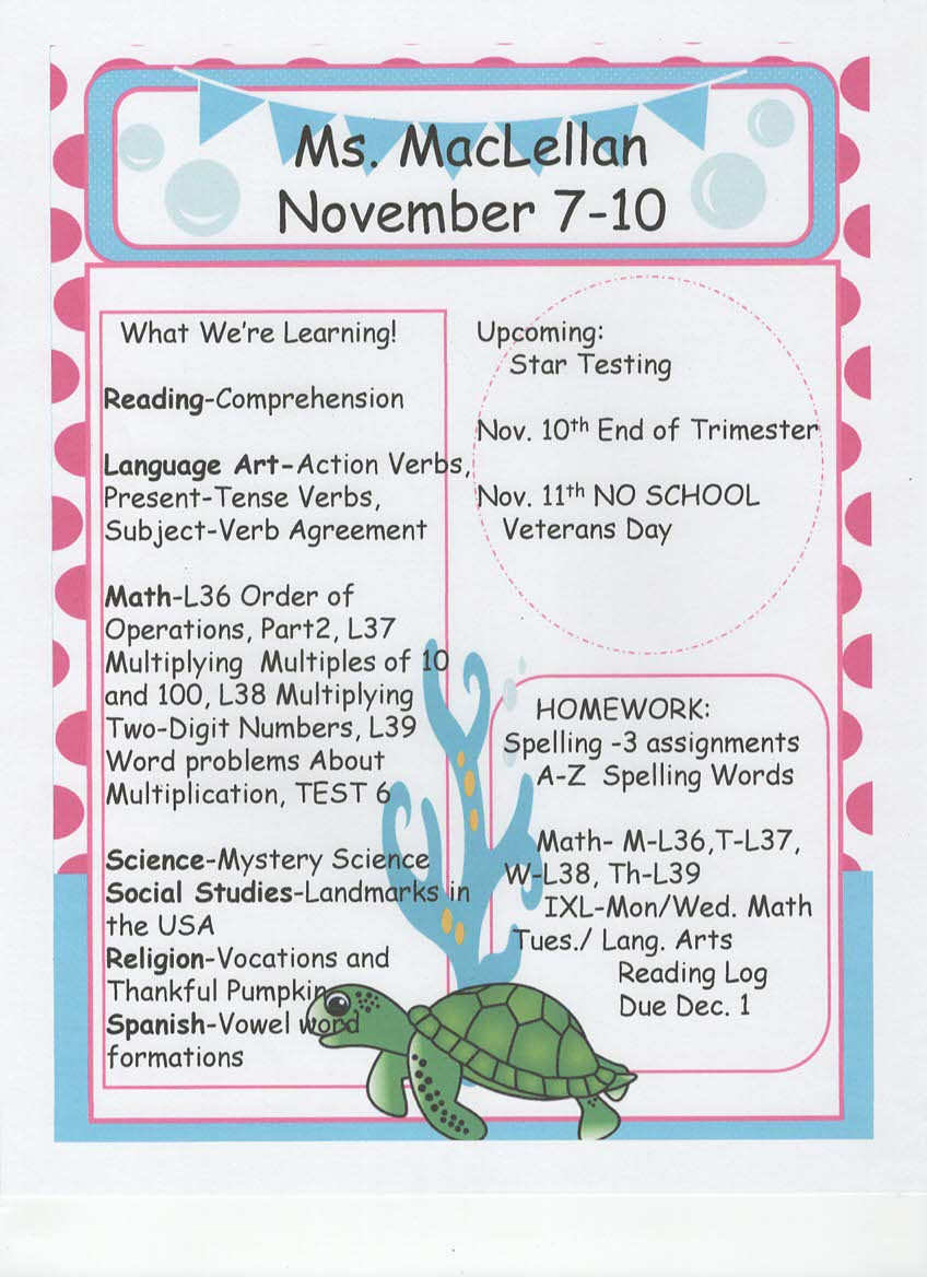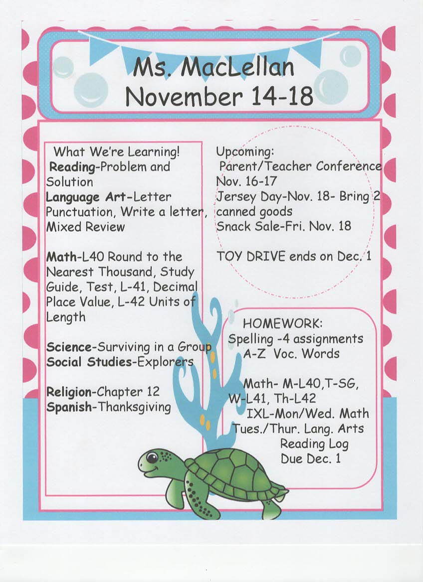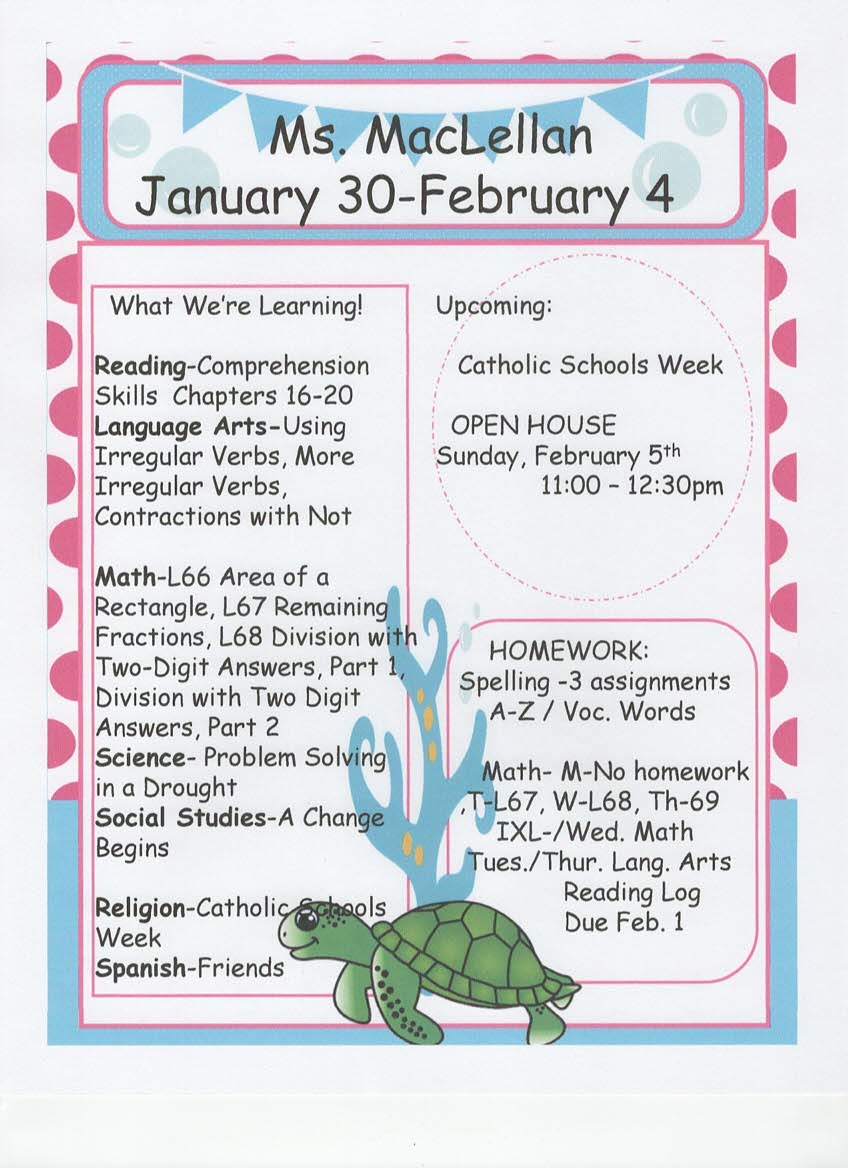 newsletter, tests, and spelling words