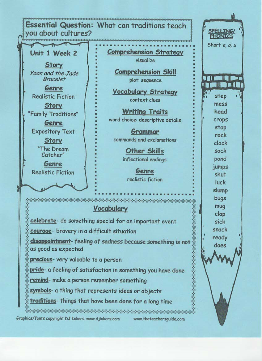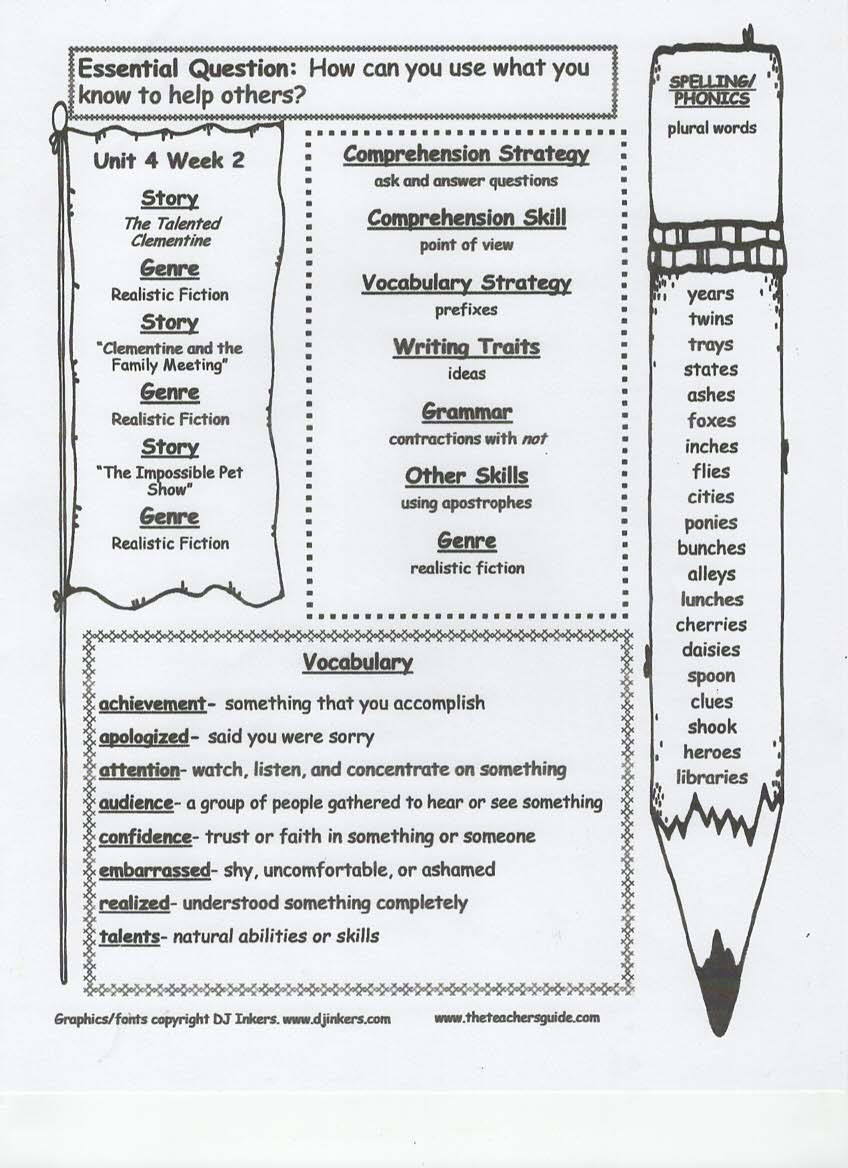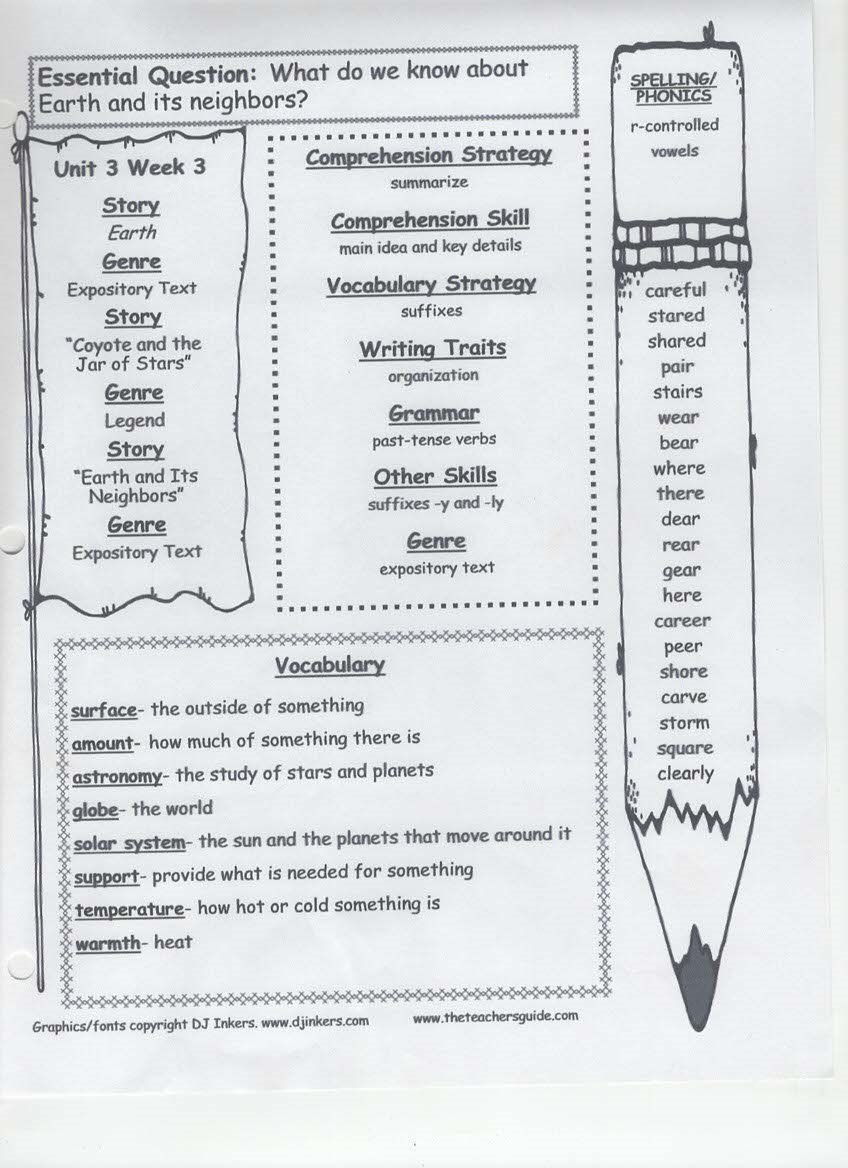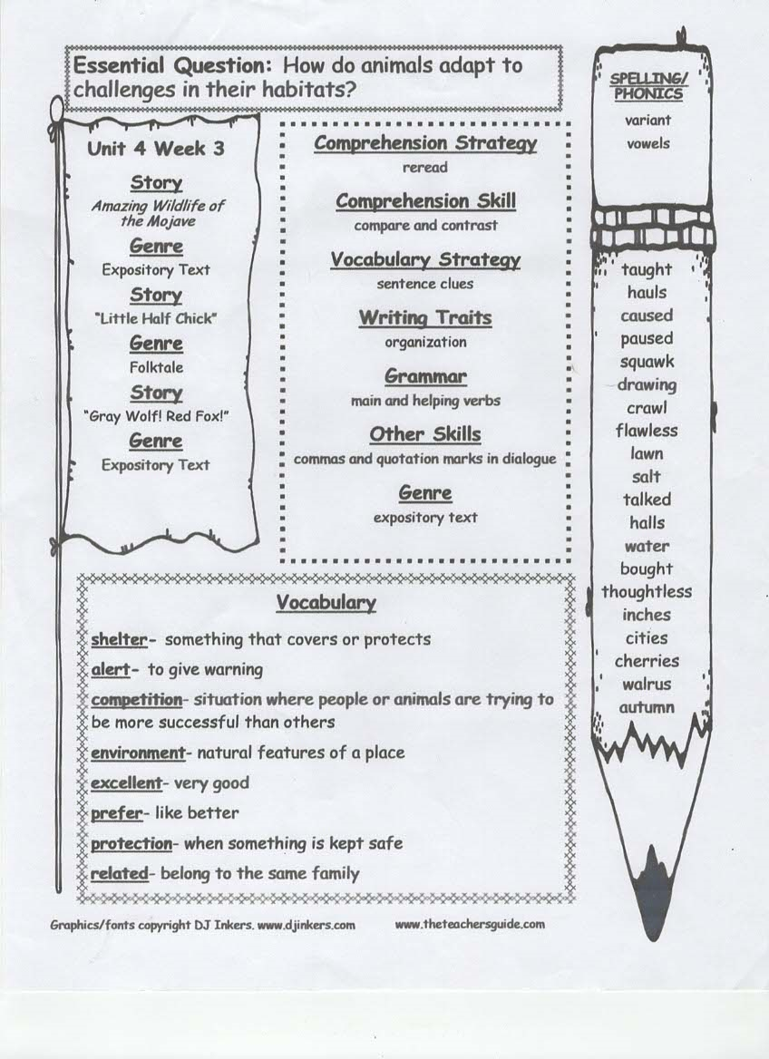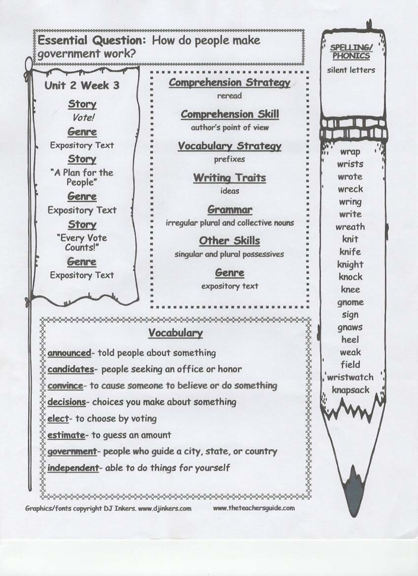 newsletter, tests, spelling and vocabulary words