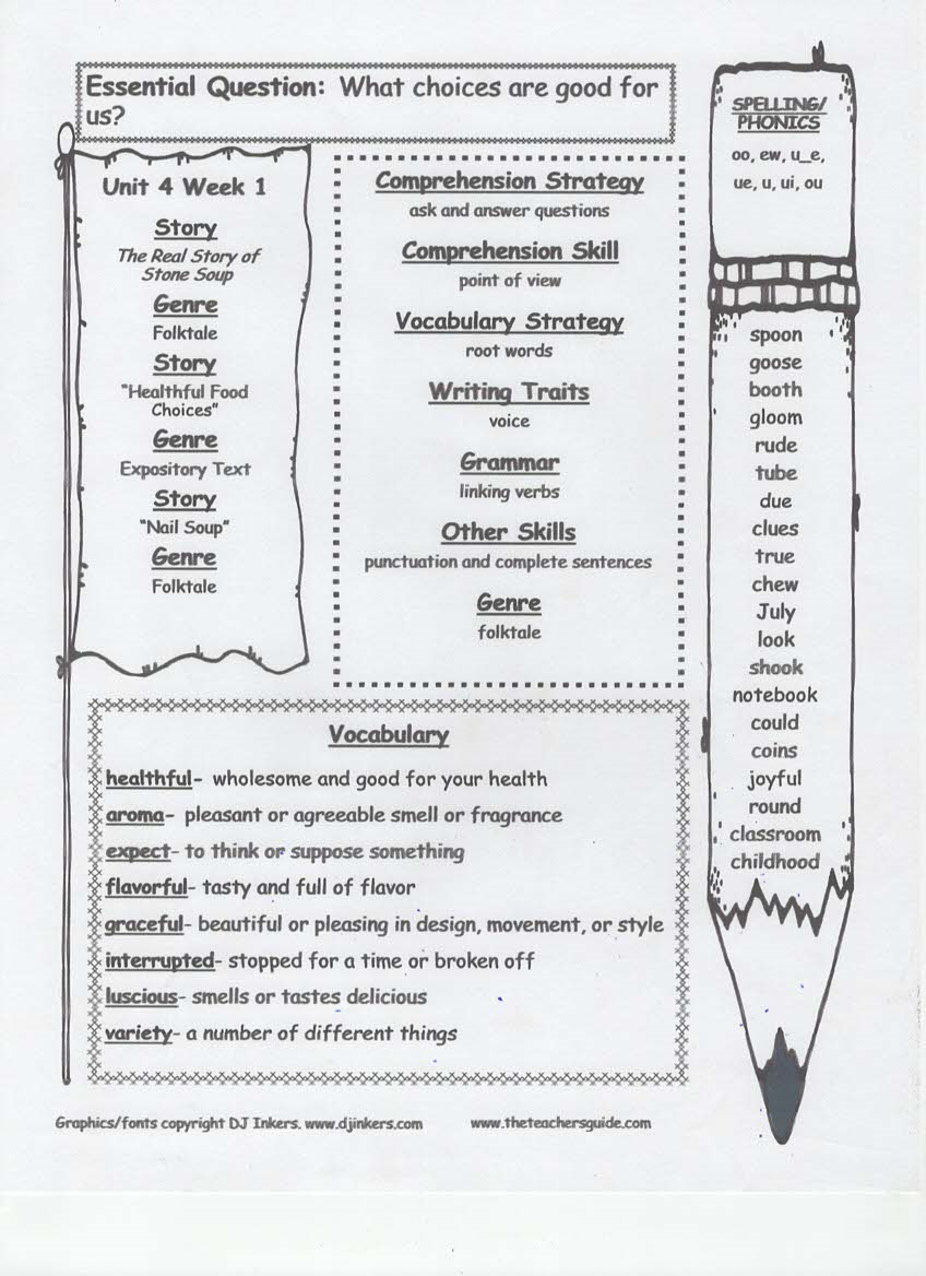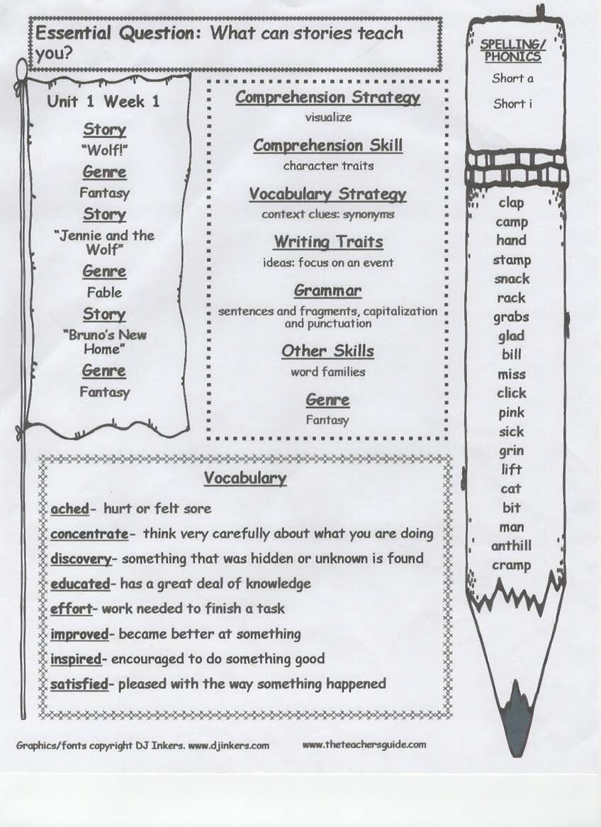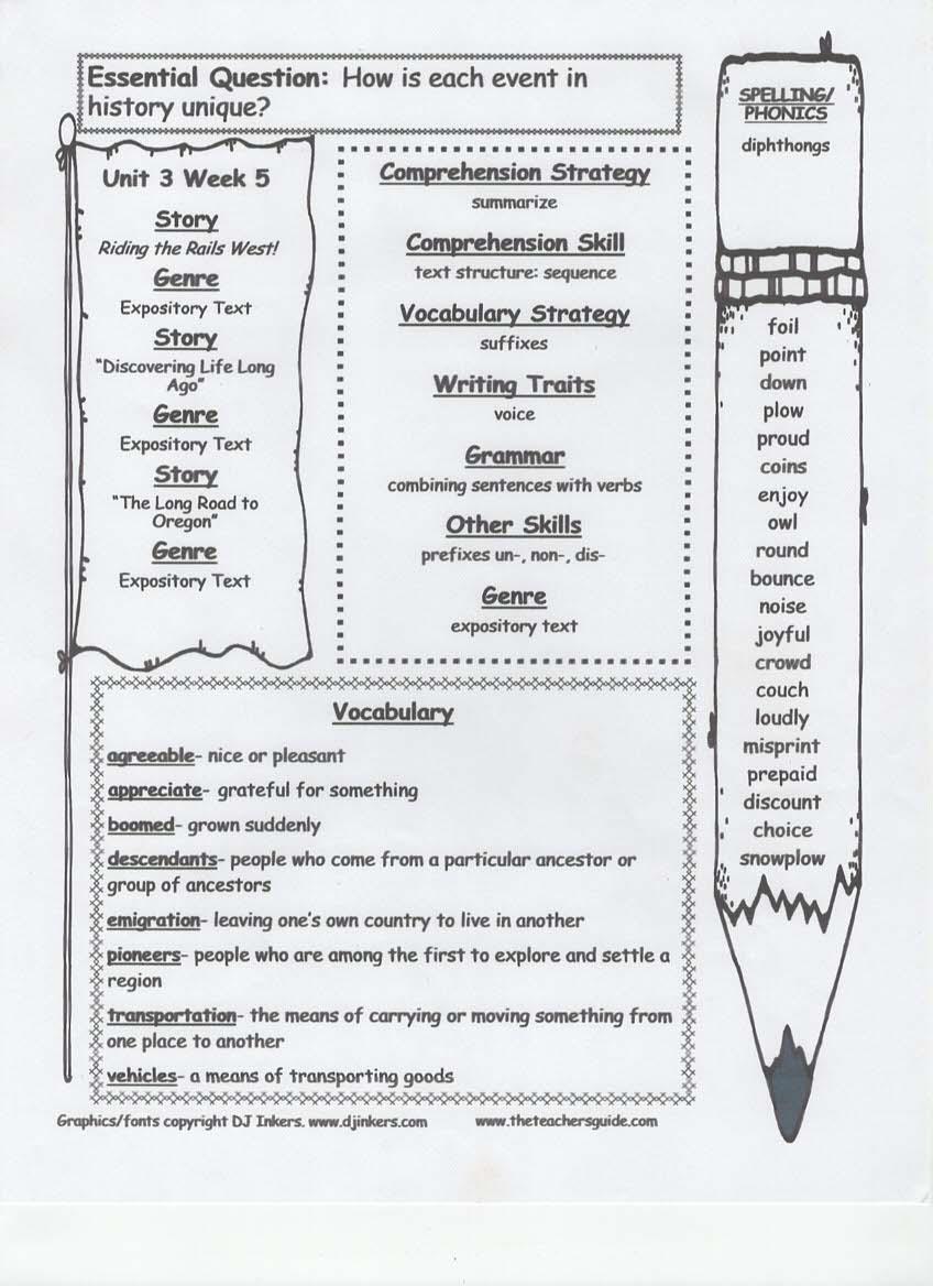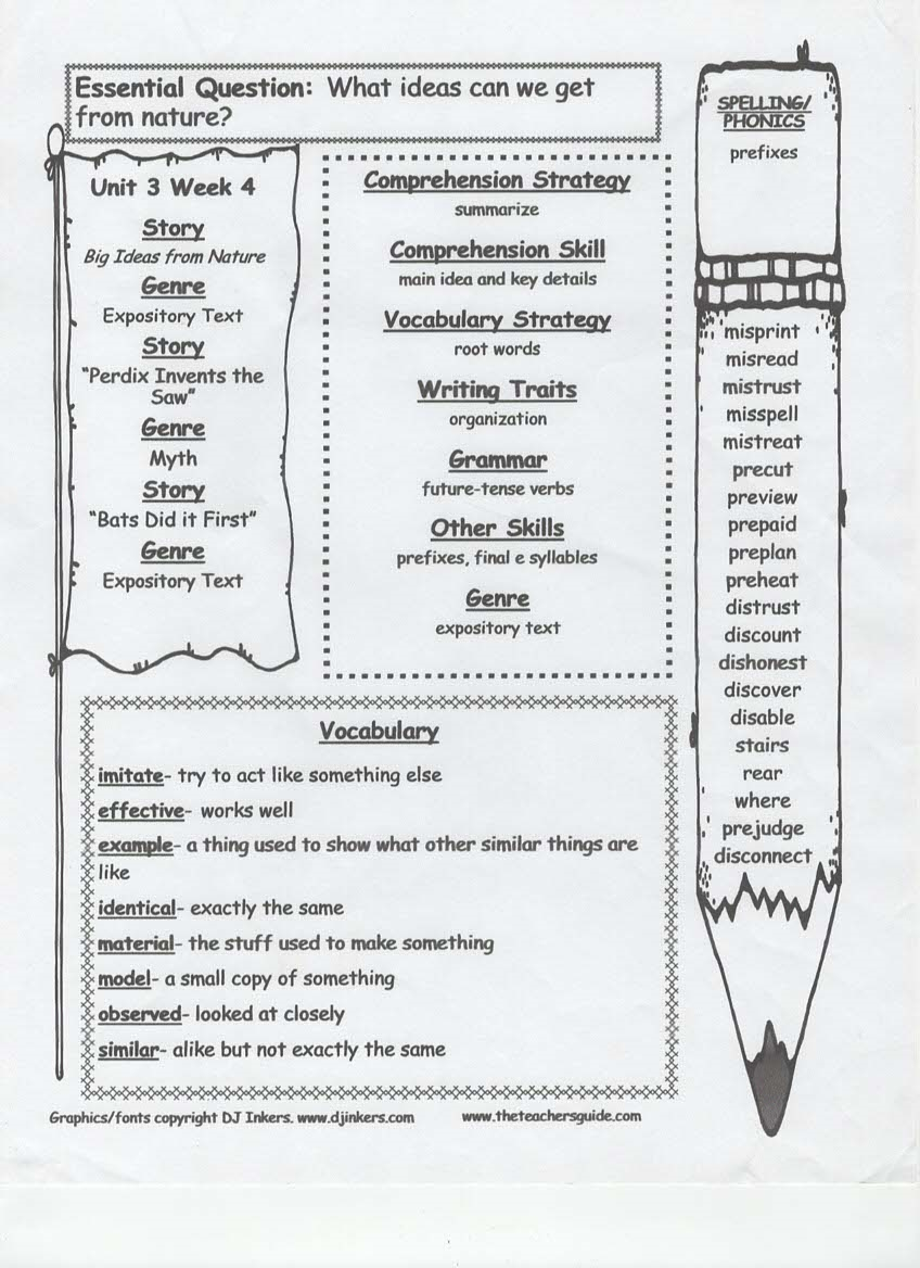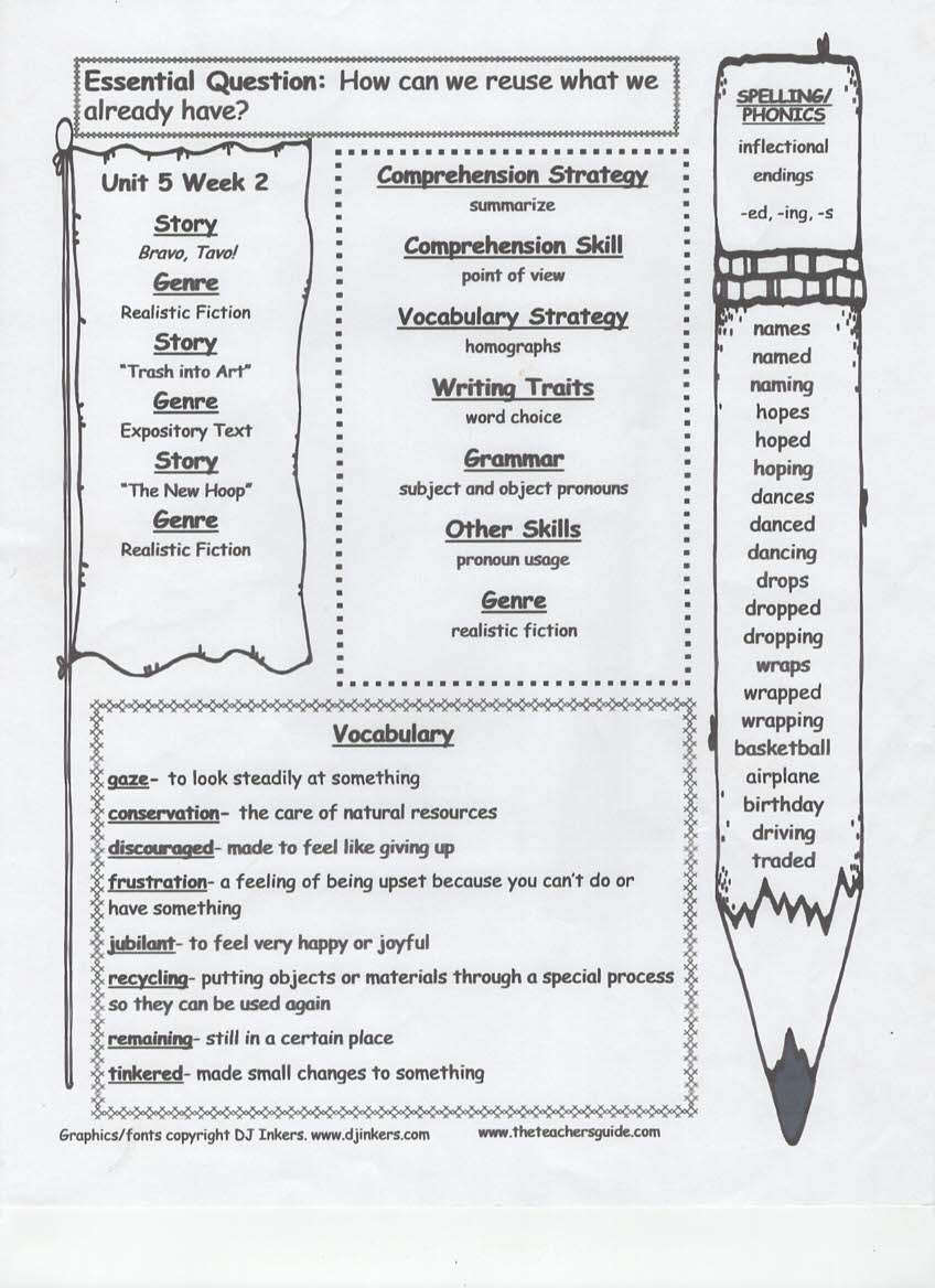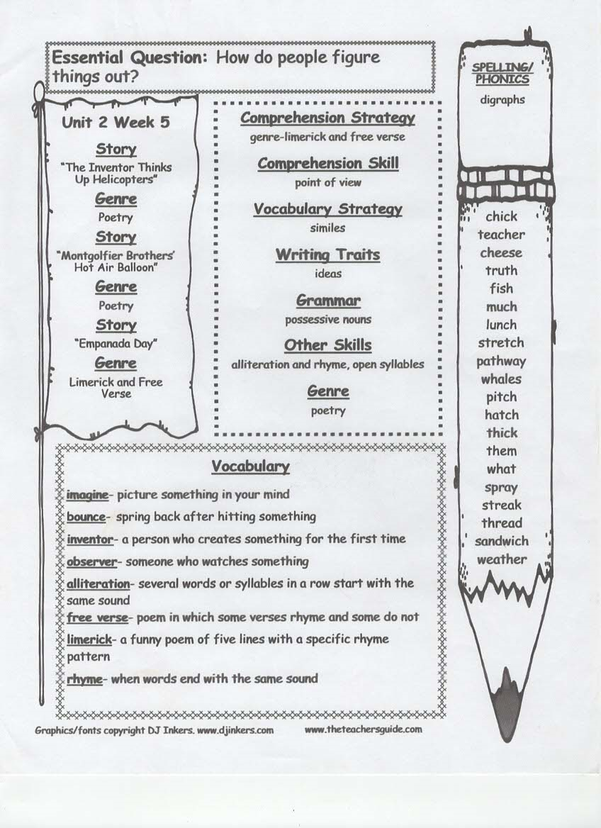 newsletter, tests, spelling and vocabulary words
