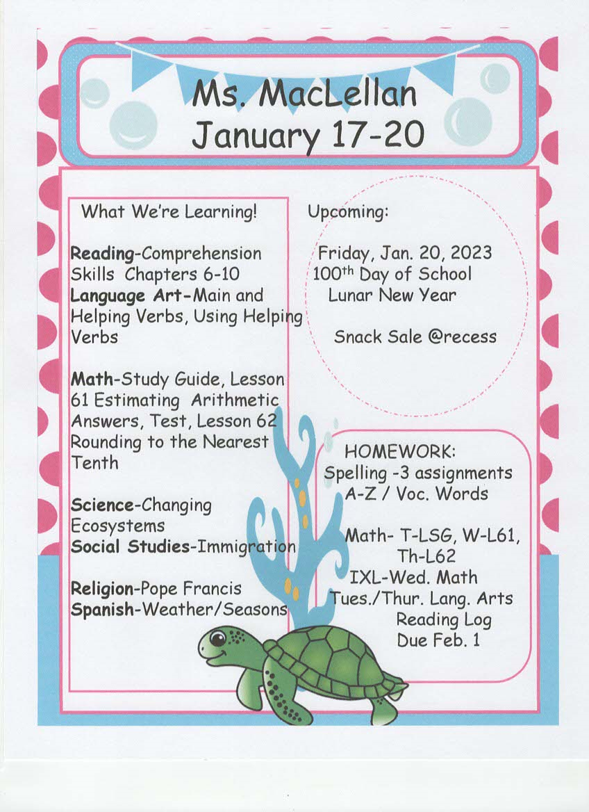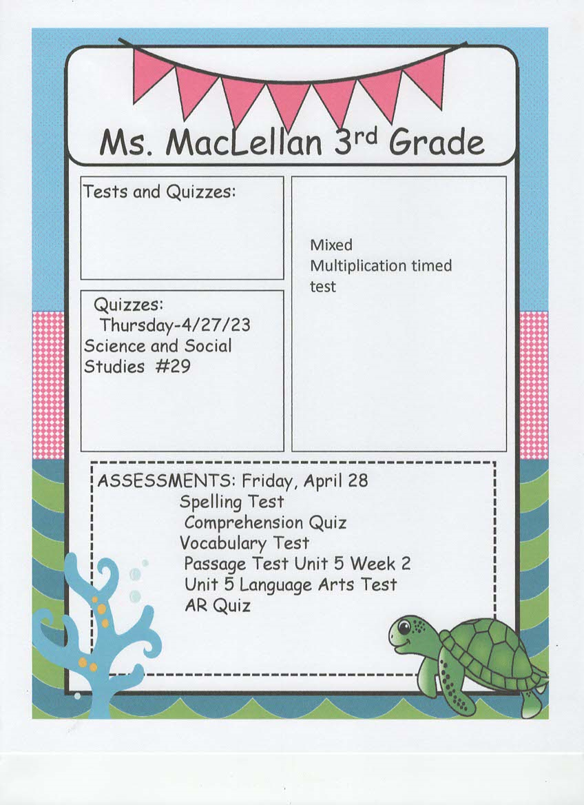 Ms. MacLellan's Class 2022-2023 Assignments