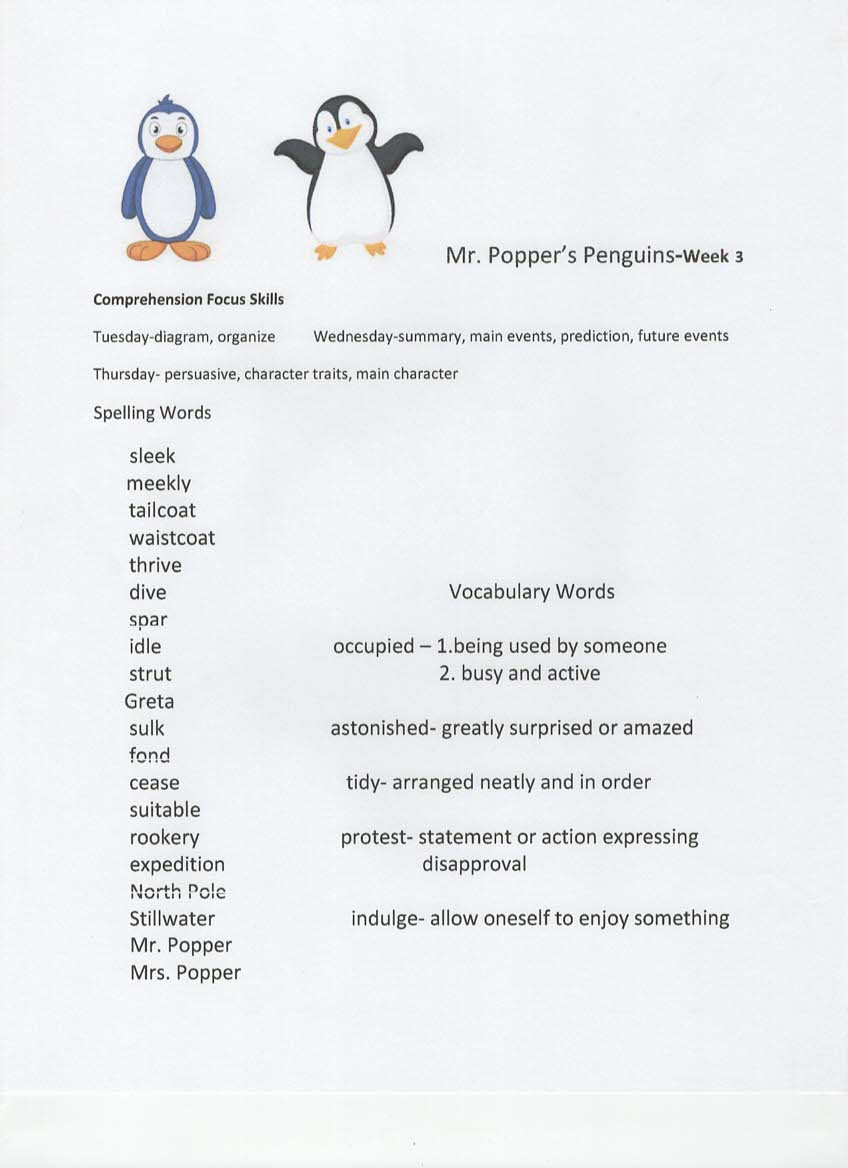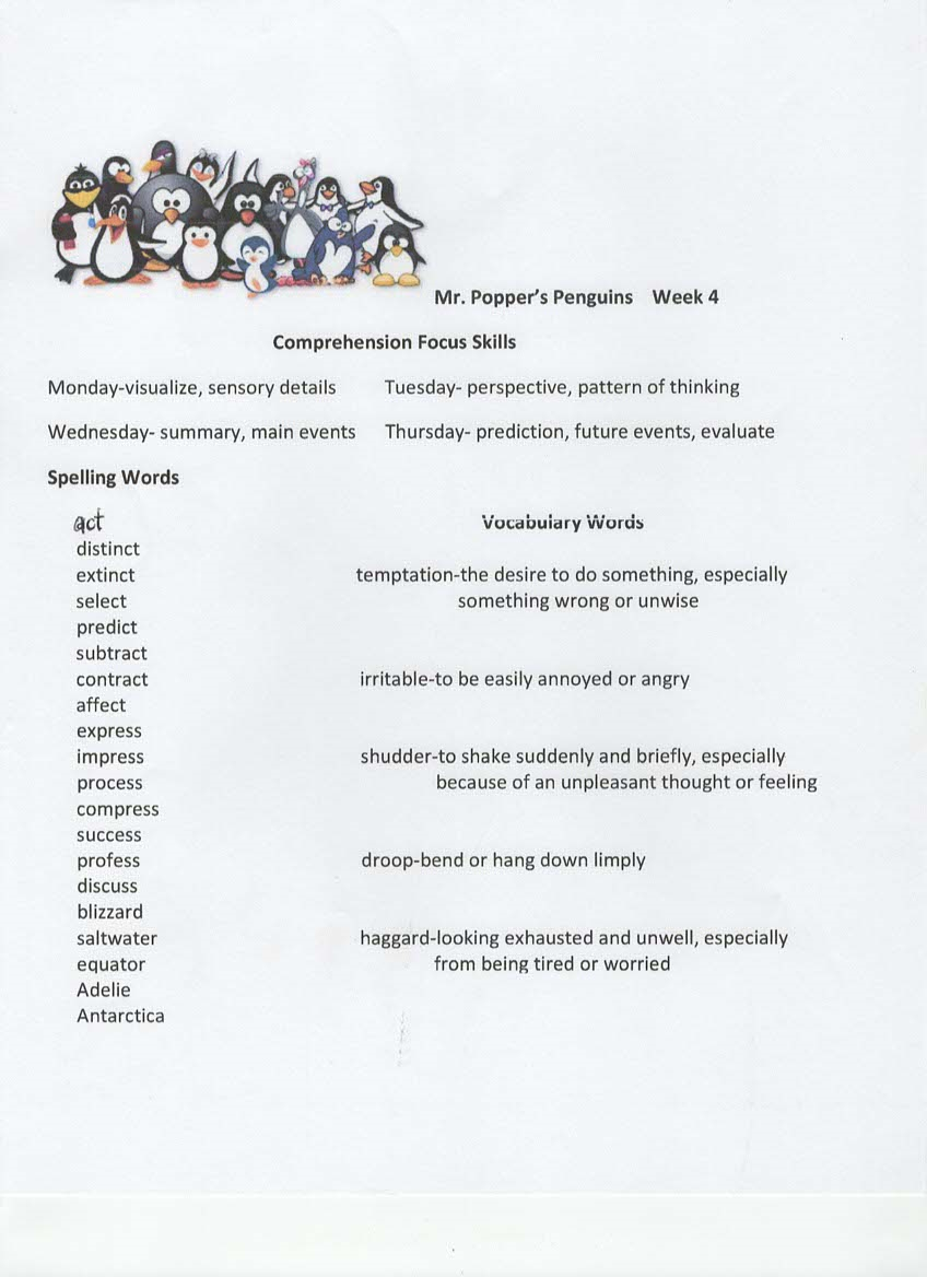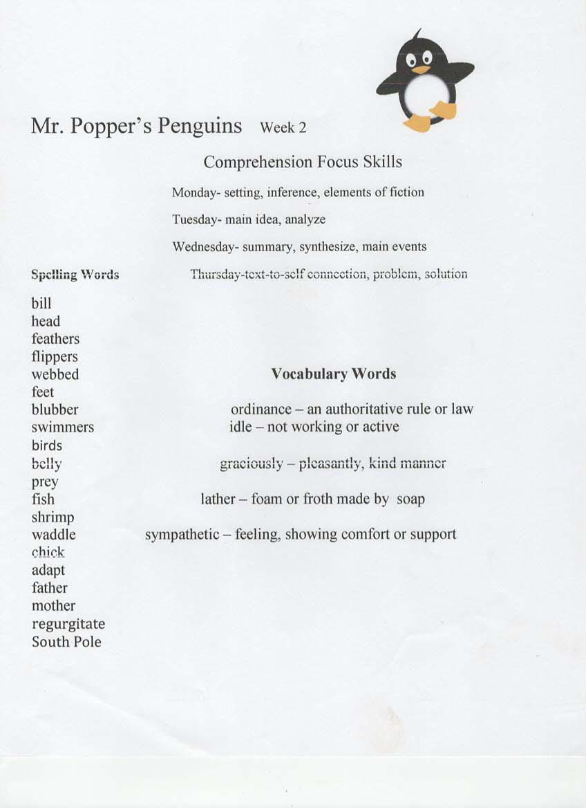 Newsletter, Tests, Spelling and vocabulary words