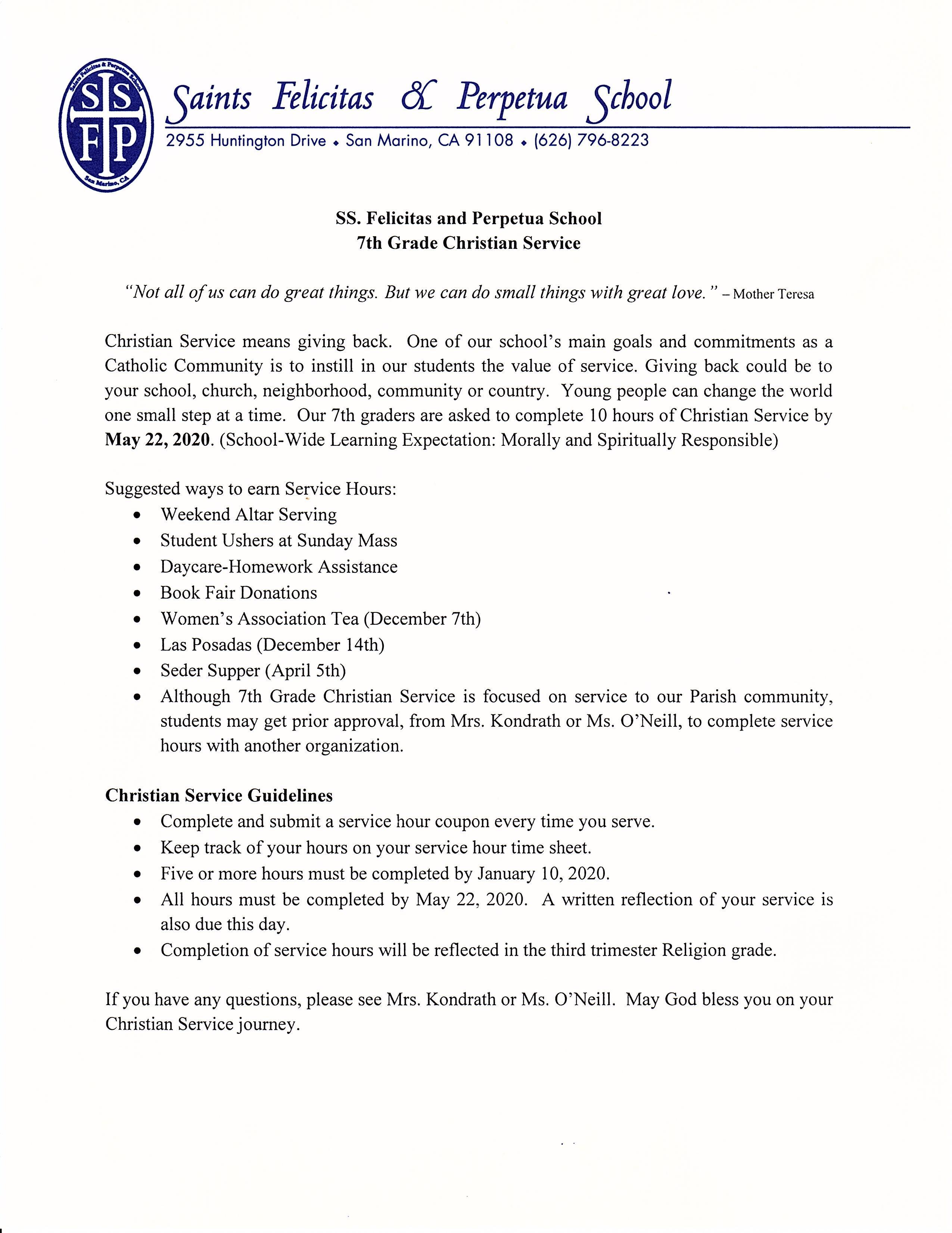 7th grade Religion Assignments